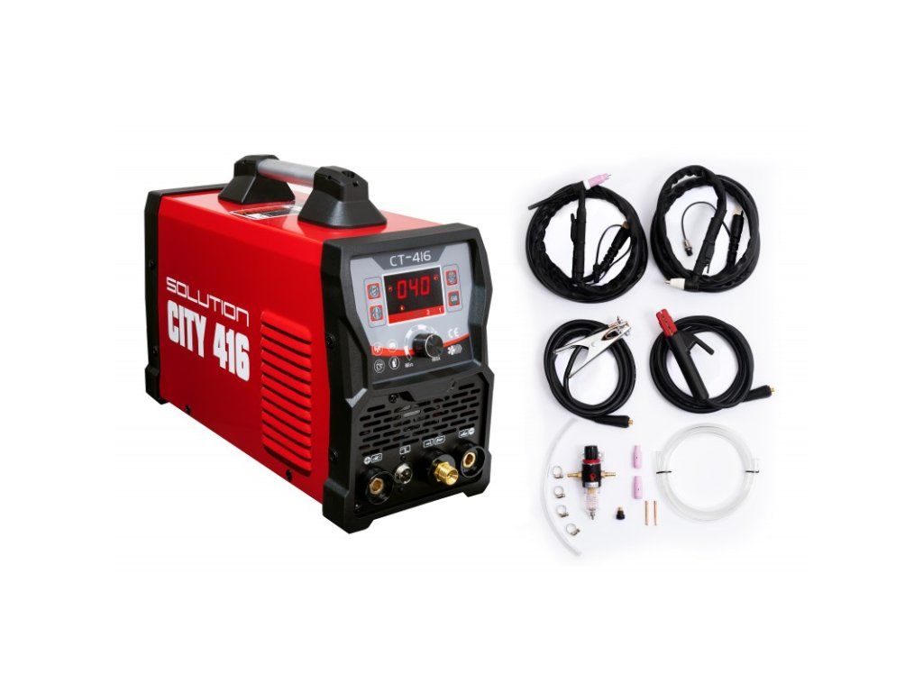 Solution CITY 416 je jednofázová multifunkčná invertorová plazmová rezačka a zároveň zváračka, ktorá dokáže zvárať metódou MMA - elektródou a metódou TIG - wolfrámovou elektródou. Zapaľovanie je vysokou frekfenciou HF. Je určené pre rezanie všetkých vodivých materiálov ako sú napr. uhlíkové ocele, nerez, zliatiny a iné farebné kovy.